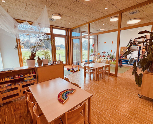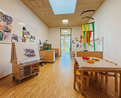 offenes Frühstück – Angebote und Aktivitäten z.B. kochen und backen, turnen, kreatives Gestalten, 1-2x wöchentlich Naturtag, 1x wöchentlich Vorschultreff